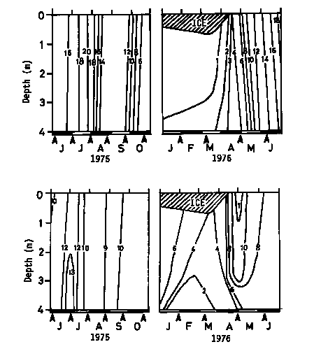 Title : Temperature and DO, isopleths (1985-1976)