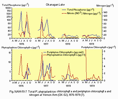 Title : Total-P, phytoplankton chlorophyll-a and periphyton chlorophyll-a and nitrogen (1976-1979)