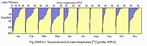 Title : Seasonal trend of water temperature profile (monthly, 1975)