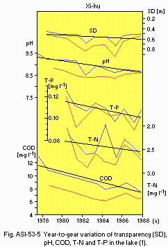 Title : Year-to-year variation of transparency, pH, COD. T-N and T-P (1978-1988)