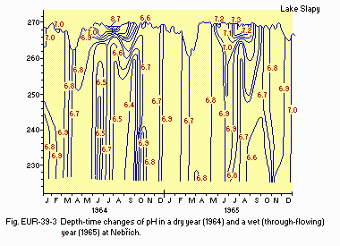 Title : Monthly, depth-time profile in a dry year (1964) and a wet year (1965)