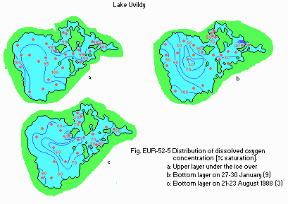 Title : Horizontal profile of DO, under ice and bottom (Jan. Aug. 1988)