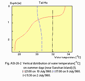 Title : Vertical distribution of water temperature, depth 0-3m, Temp.28-34C