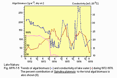 Title : Trends of algal biomass and conductivity, monthly (1972-1978)